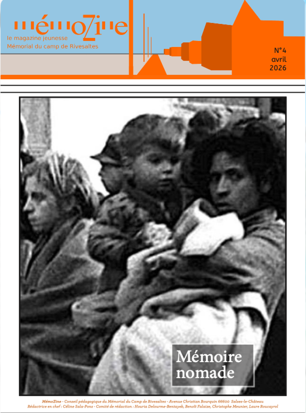 Ce quatrième numéro est consacré à une thématique longtemps restée en marge des récits historiques : celle des Nomades. À travers des récits, des œuvres de littérature jeunesse, des témoignages et des activités, il met en lumière l’histoire de ces femmes, hommes et enfants dont les parcours ont été marqués par l’exil, les discriminations et, durant la Seconde Guerre mondiale, l’internement dans des camps comme celui de Rivesaltes.